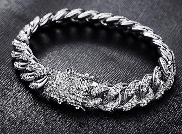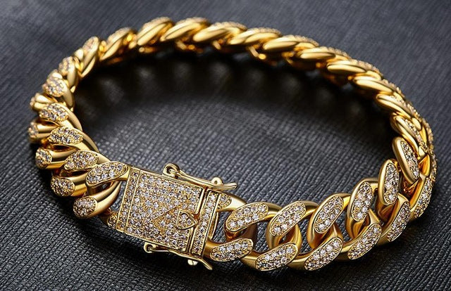 Uwin Hip Hop Luxury Crystal Cz Zircon Triple Lock Bracelet 14mm Cuban Link Box Clasp Bracelet Men Female Jewlery Drop Shipping